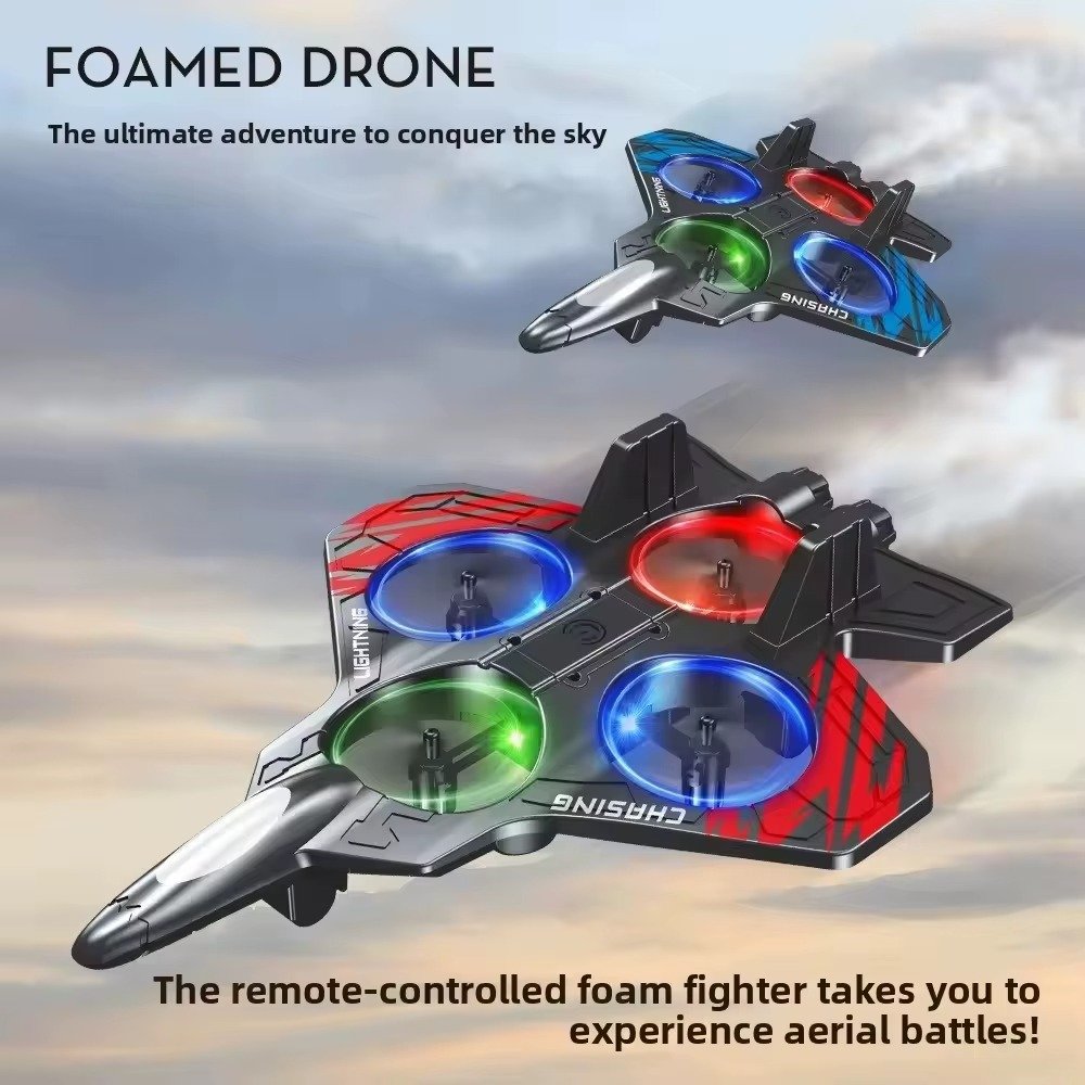 Experience high-speed aerial action with the SkyFalcon X4 LED RC Fighter Jet, a futuristic remote control flying toy designed for kids and beginners. Styled like a modern stealth fighter aircraft, this RC jet features bright LED propellers, durable lightweight construction, and stable 2.4GHz control for smooth indoor and outdoor flying. Equipped with multiple propeller motors and intelligent flight balance, the jet offers easy handling, responsive controls, and exciting visual effects. The USB rechargeable batteries ensure extended playtime, while the ergonomic remote controller provides precise maneuvering. Perfect as a gift for aviation lovers, kids, and RC beginners, this fighter jet delivers fun, durability, and performance in one powerful package.