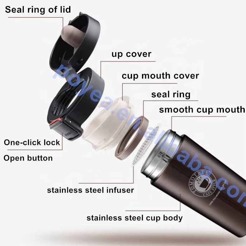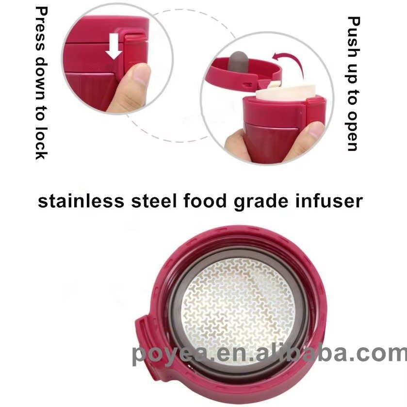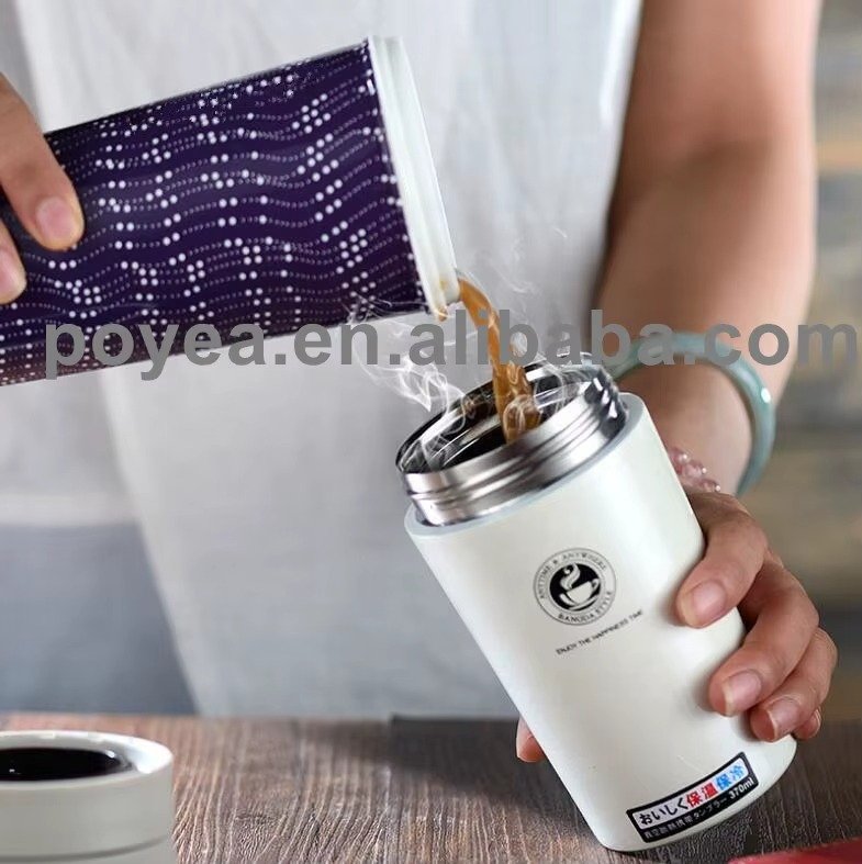 - This flask has ideal shape and size to carry. It can perfectly fit in most of the car cup holder. It has Stainless steel Strainer inside that helps to drink green tea on the go.This Mug is leak proof, so you can carry your beverages without any worries.