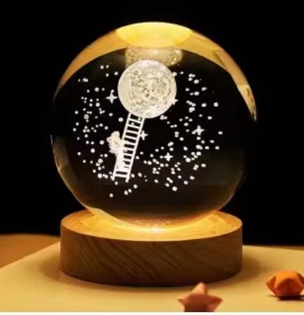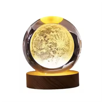 LED Glowing Crystal Glass Globe 3D Nebula Laser Carved Solar System Lamp