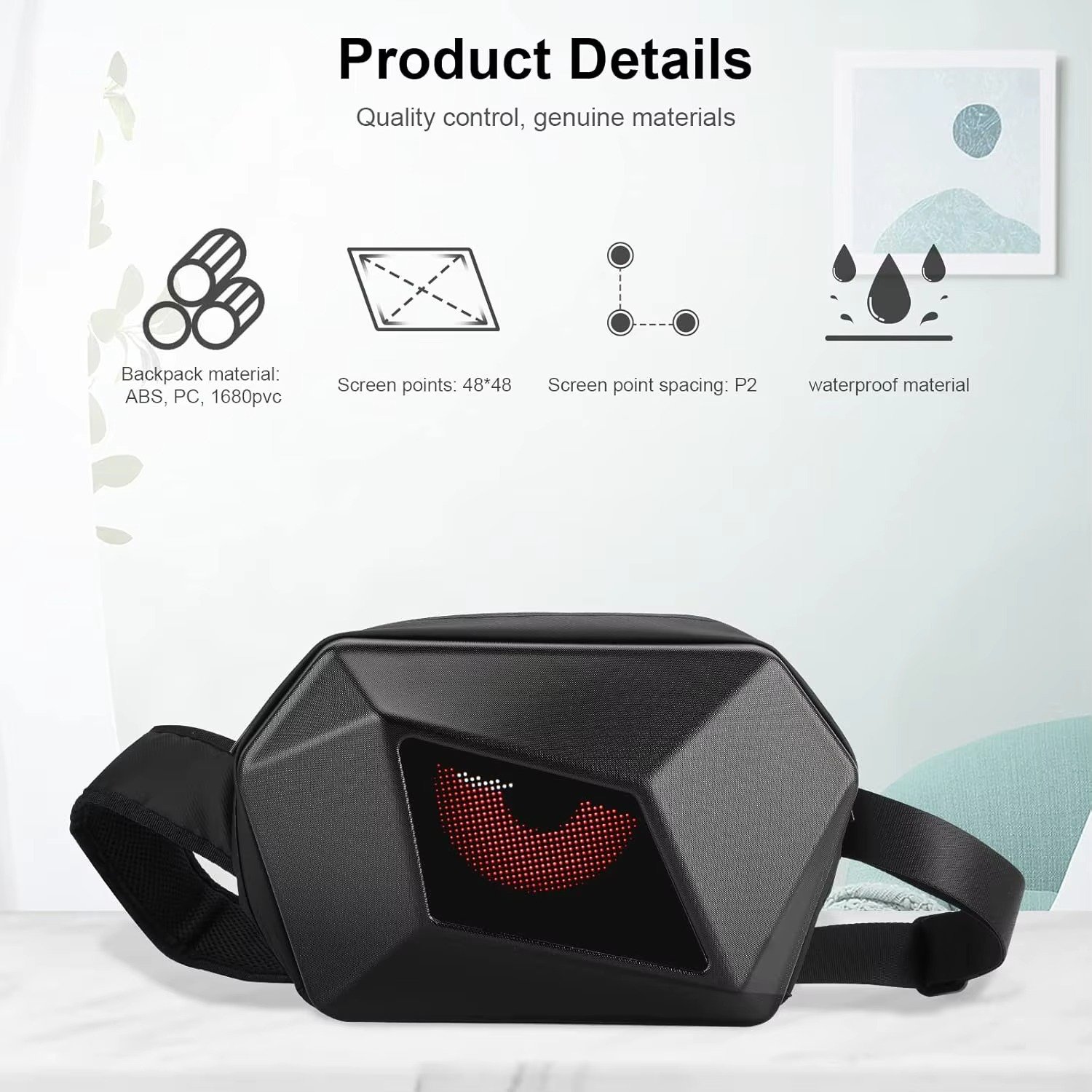 Smart Crossbody Backpack for Men & Women, Customizable DIY LED Screen for Travel, Campus & Daily Use