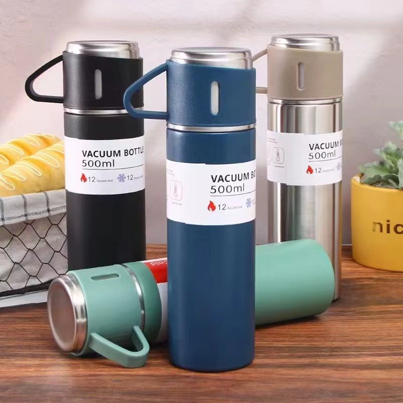 - Premium Vacuum Flask Set: Includes a 500ml insulated flask and 2 matching stainless steel cups for a complete beverage experience on the go.